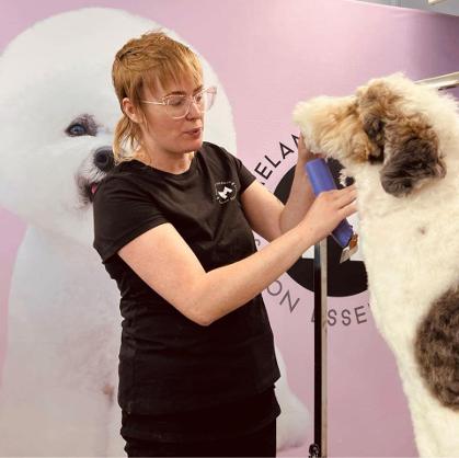 Marcia Strong, an award-winning certified master groomer and has been a respected Professional Pet Groomer since 2009. With a dedication to detail and a competitive drive, Marcia embarked on her grooming journey 15 years ago, honing her skills under the mentorship of two renowned groomers. Transitioning from salon work to competitive grooming in 2010, Marcia's talent shone through as she clinched multiple awards and titles across various Poodle and Mixed breed classes. Her grooming prowess extends beyond competitions as she has even groomed dogs featured in international magazines and various media productions. In 2015, Marcia achieved the esteemed title of Certified Master Groomer through the Canadian Professional Pet Stylists (CPPS), marking a culmination of years of dedication. Today, she serves as a senior certifier for the board, sharing her expertise with aspiring groomers. While Marcia is renowned for her professional accomplishments, she's also made waves in the realm of social media. Her TikTok channel, "I Like Dog More Than You," has repeatedly gone viral, earning her three Barkleigh Honor Awards and sponsorship deals with several brands. Beyond her grooming and instructional endeavors, Marcia is an enthusiastic competitor at the open level. Keep an eye on the ring for her and her Kerry Blue, Ayla, and Mini Poodle, Possum. In recent years, Marcia has transitioned to working from home after making the decision to sell her storefront locations. With a small team, she operates a salon in a serene, intimate setting, offering one-on-one grooming experiences that prioritize the comfort and safety of both dogs and groomers alike.